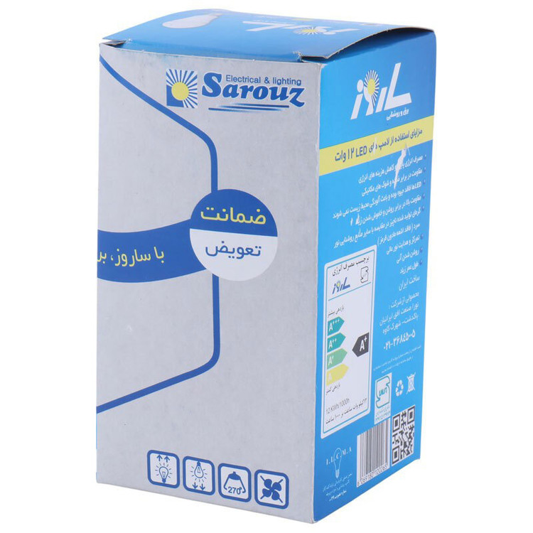 لامپ از نوع LED با توان خروجی 12W، طراحی شده به صورت حبابی با سرپیچی از نوع E27