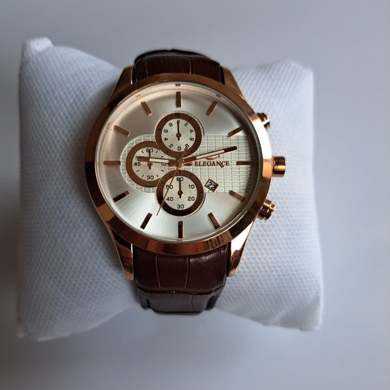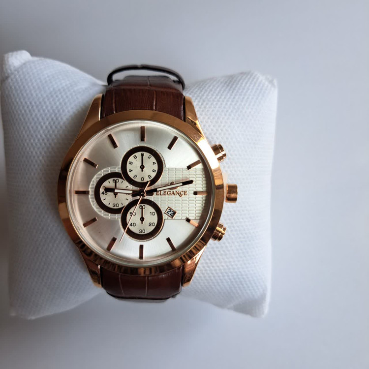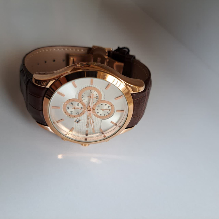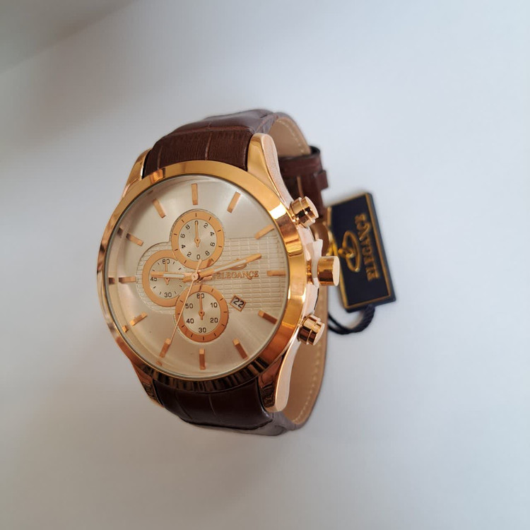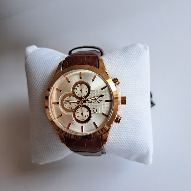 ساعت مچی الگانس مردانه ELEGANCE بند چرمی رنگ قهوه ای
