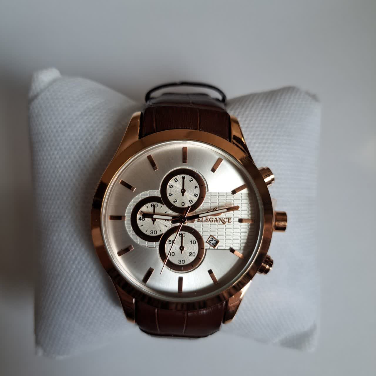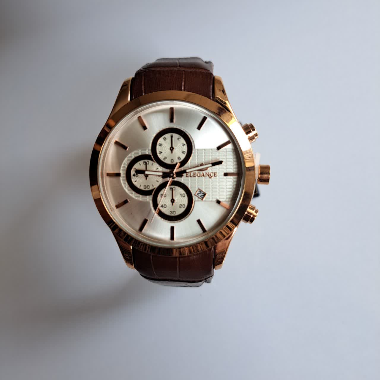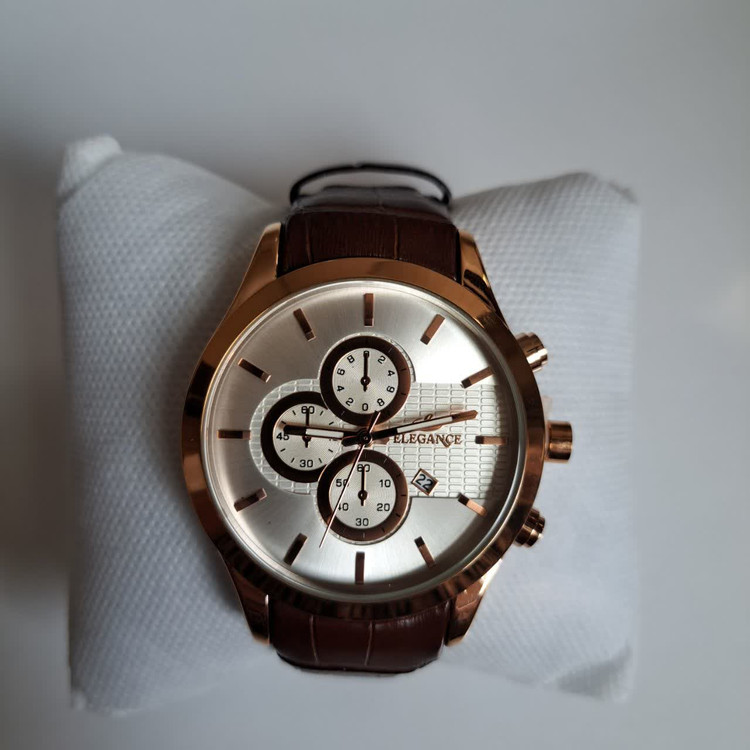 ساعت مچی الگانس مردانه ELEGANCE بند چرمی رنگ قهوه ای